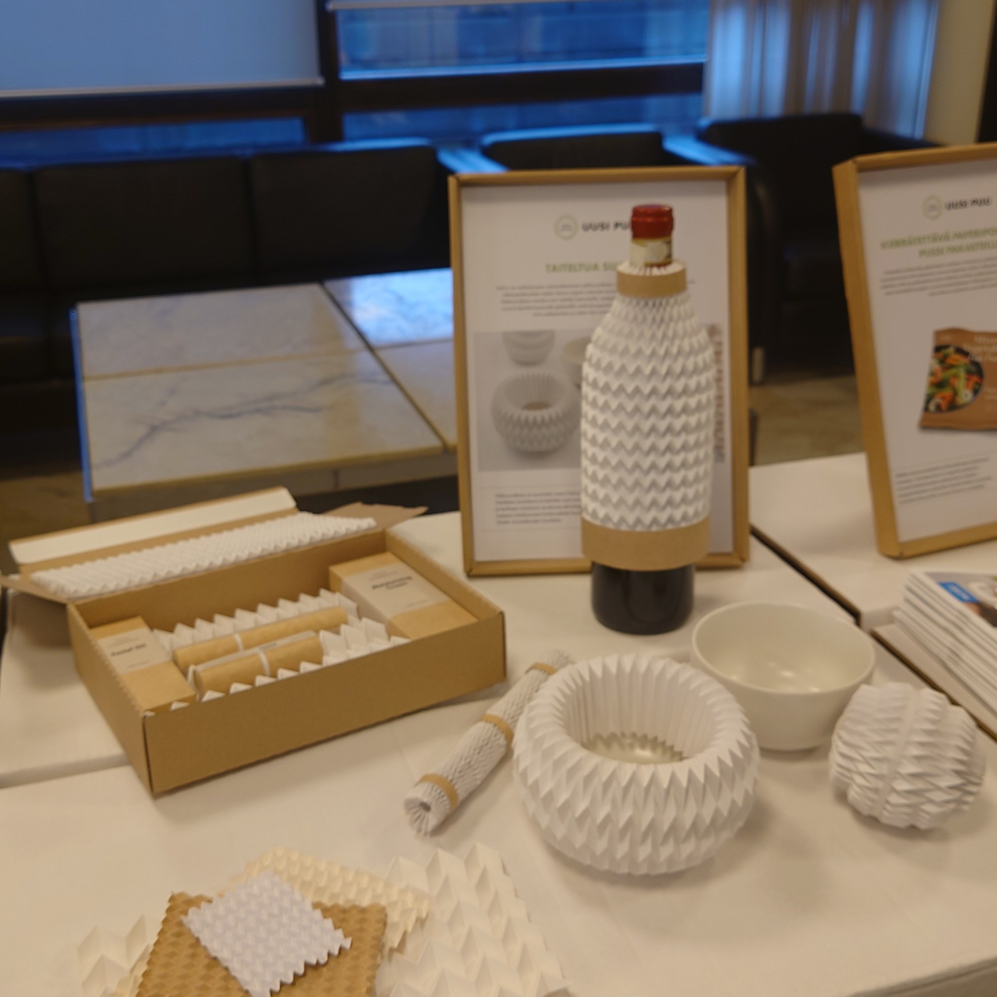 Fold project participated in New Wood (Uusi puu) exhibition with a concept of folded wood based cushioning materials for e-commerce packaging. The exhibition was held at the Finnish parliament, and a competition for new wood based innovations was launched at the event.